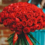 Buquê de rosas encantador, composto por flores frescas, selecionadas com…